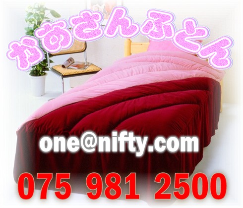 - - - - - ホームページ商品ニュース - - - - - @ かあさんふとんの大出血サービス品<羊毛・掛敷ふとん・2組・10点セット> にてご奉仕 !! (^o^;) A 良いまくら(ピロー)を格安にて、いろいろと取り揃えております。まくらの集合写真 B 毛布。 肌ざわりがよい 掛け毛布・敷き毛布 C ベビーふとん。 かわいい赤ちゃん用にやわらかで安心な素材。 D 正絹絞り(絹100%)真綿(絹100%)オール絹100%の最高級掛ふとんは如何でしょう。木箱入りです。 E 西村ふとん店製 座布団 銘仙判、八端判、緞子判、大判金襴、落語用紫高座、講座座布団(褥しとね)寺院用プロ仕様〜茶室用・・ F 子供用ふとん掛・敷 ジュニア羊毛(枕サービス中!) G 西村ふとん店製 サテン掛・敷ふとん H 西村ふとん店製 サテン [和式] 掛・敷ふとん I お値打ち品 羽毛 W(ダブル)4点セット 超長綿サテンにホワイトグース95%を使いました。羽毛掛・羊毛敷・羽根枕2つ J かや(蚊帳) 昔なつかしい蚊帳 ベビー蚊帳、3畳用〜10畳用までございます。 K ミニチュアふとんセット 掛・敷和ふとん4枚 枕2個 座ふとん10枚 小さくて可愛らしい置物のふとんです |