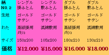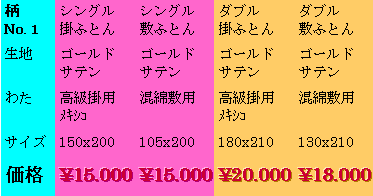 西村ふとん店 〒614ー8062 京都府八幡市八幡清水井71 電話:075ー981ー2500代 メール:one@nifty.com 次の商品 H [西村ふとん店製 サテン和式掛・敷ふとん] http://614.jp